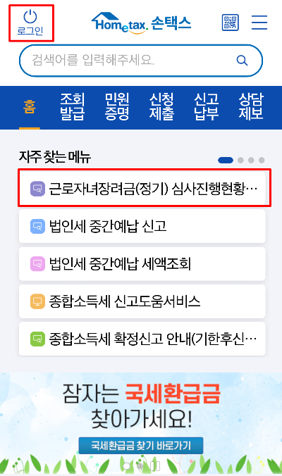 근로장려금 지급일 확인(모바일 버전)