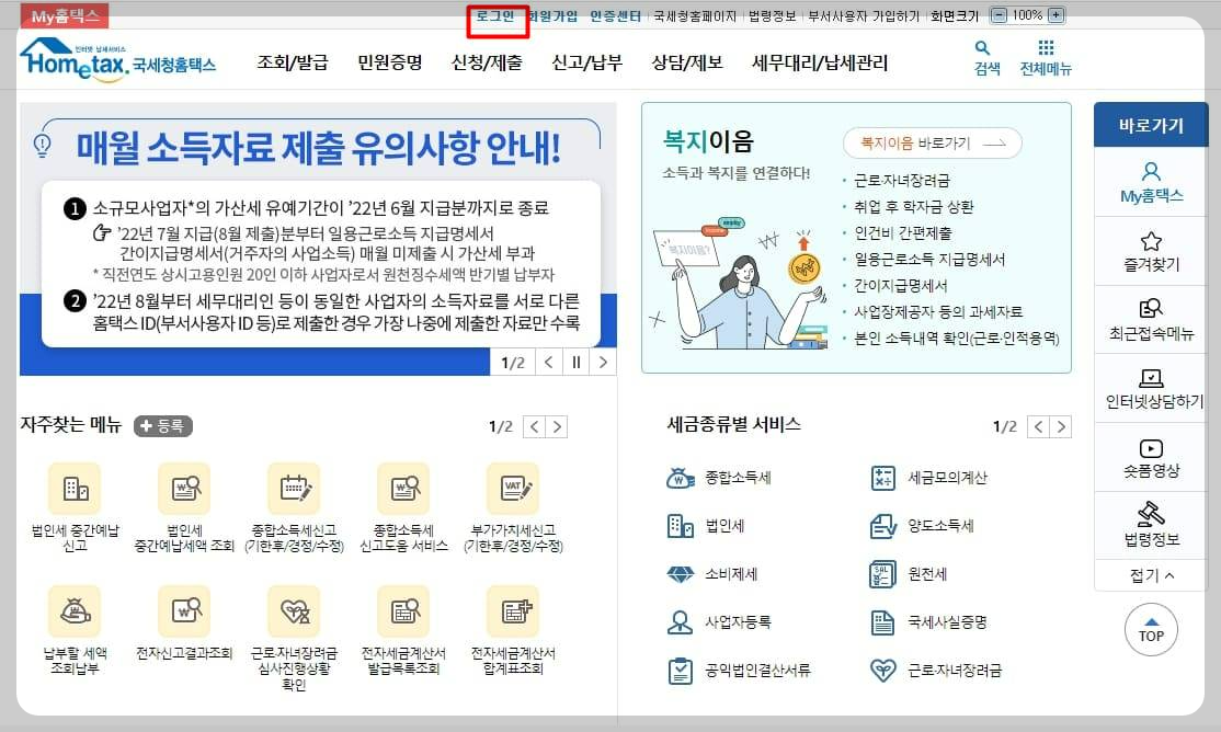 1. 국세청 홈택스 접속