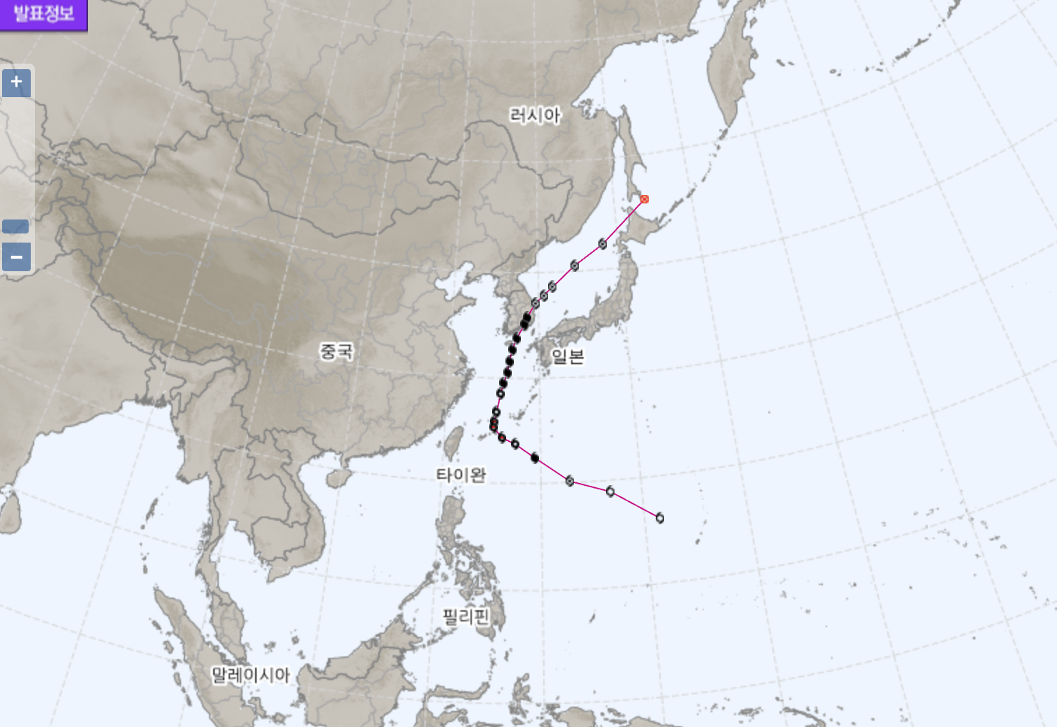 태풍매미는 9월 6일 태평양 괌에서 부터 시작했습니다. 그후 서서히 북상하여 9월 12일에서 13일께 한반도 남부지역을 시작으로 비 피해를 뿌렸습니다. 전형적인 가을태풍의 경로입니다.