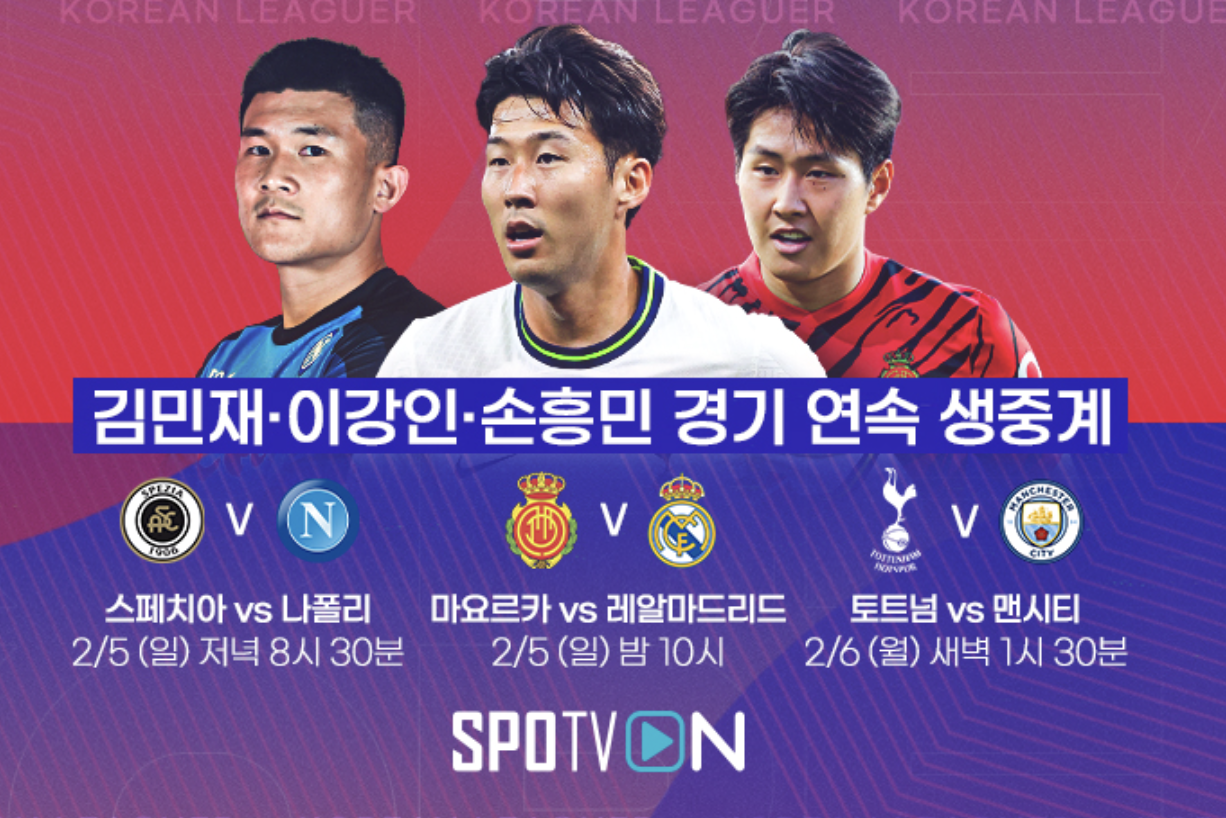 손흥민의 98호 골을 만날 수 있는 토트넘과 맨체스터의 경기는 2월 6일 월요일 한국시간 새벽 1시 30분 스포티비 나우와 스포티비 온에서 만날수 있습니다.