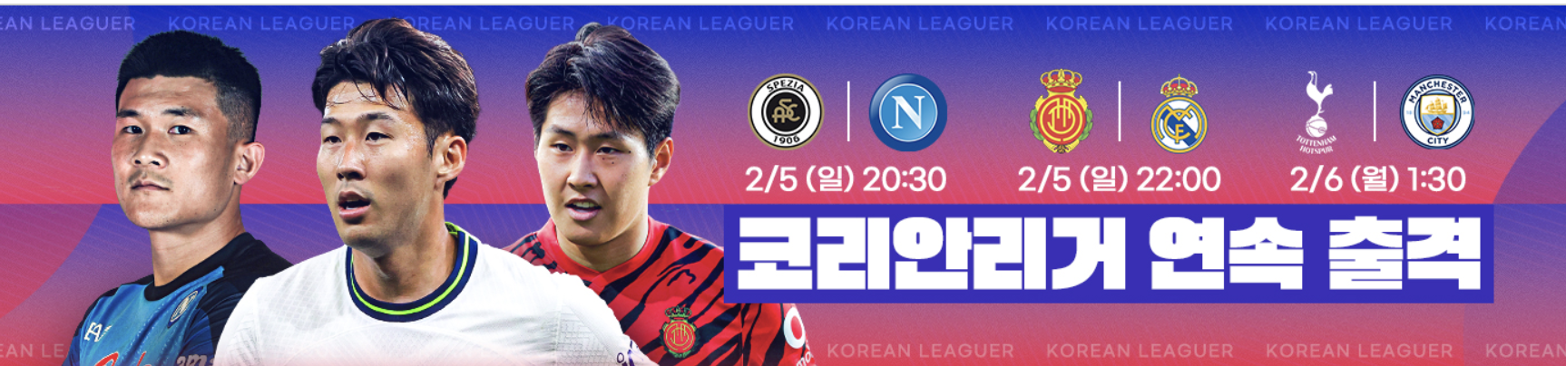 | 2월 6일 월요일 | 01시 30분 | 토트넘 VS 맨시티 | 프리미어리그 |